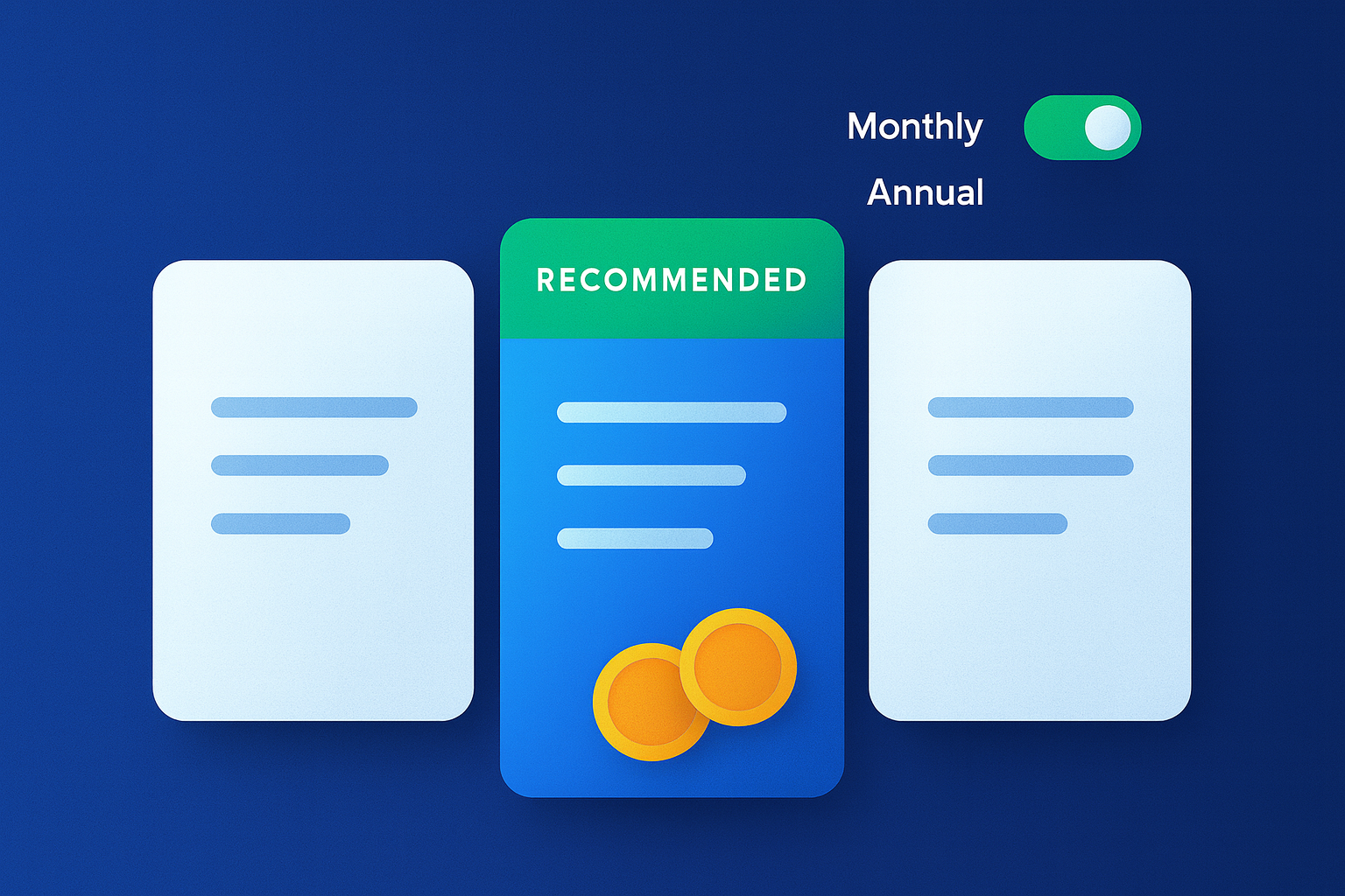 - Value-based comparison: Use a “recommended” plan and highlight feature differences users actually care about.