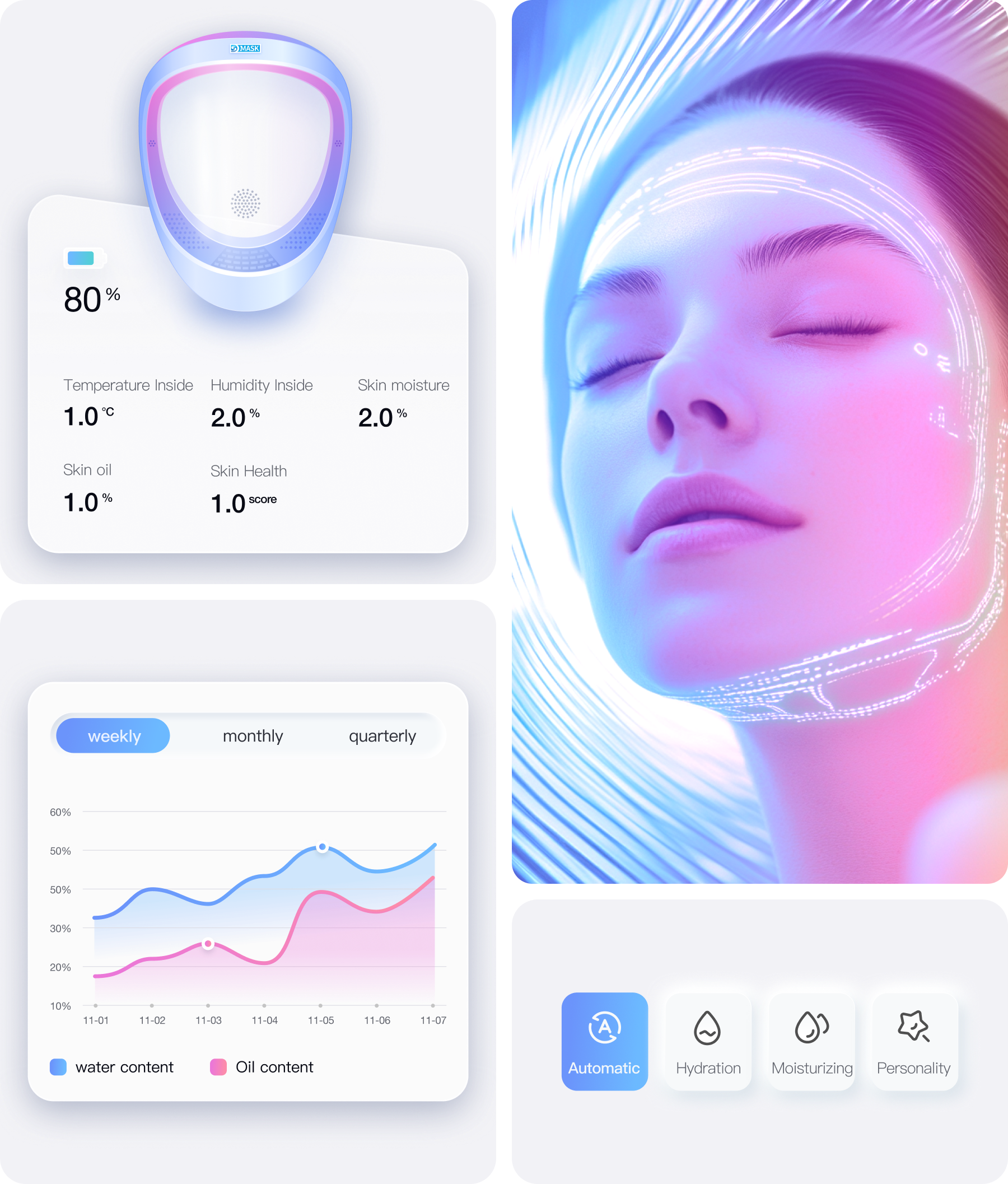 The beauty face mask primarily targets female users. It adopts harmonious colors
